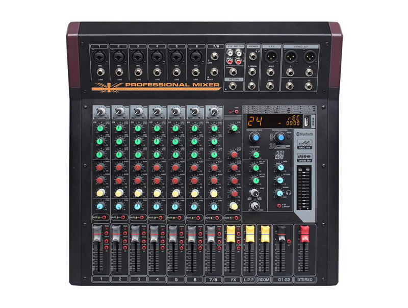 產(chǎn)品特點 10路獨立切換MIC XLR輸入/LINE單聲道輸入通道,1組立體聲; 每通道3段EQ均衡器; 60MM高精度推子; 每個通道2個AUX發(fā)送:用于監(jiān)視應(yīng)用程序...